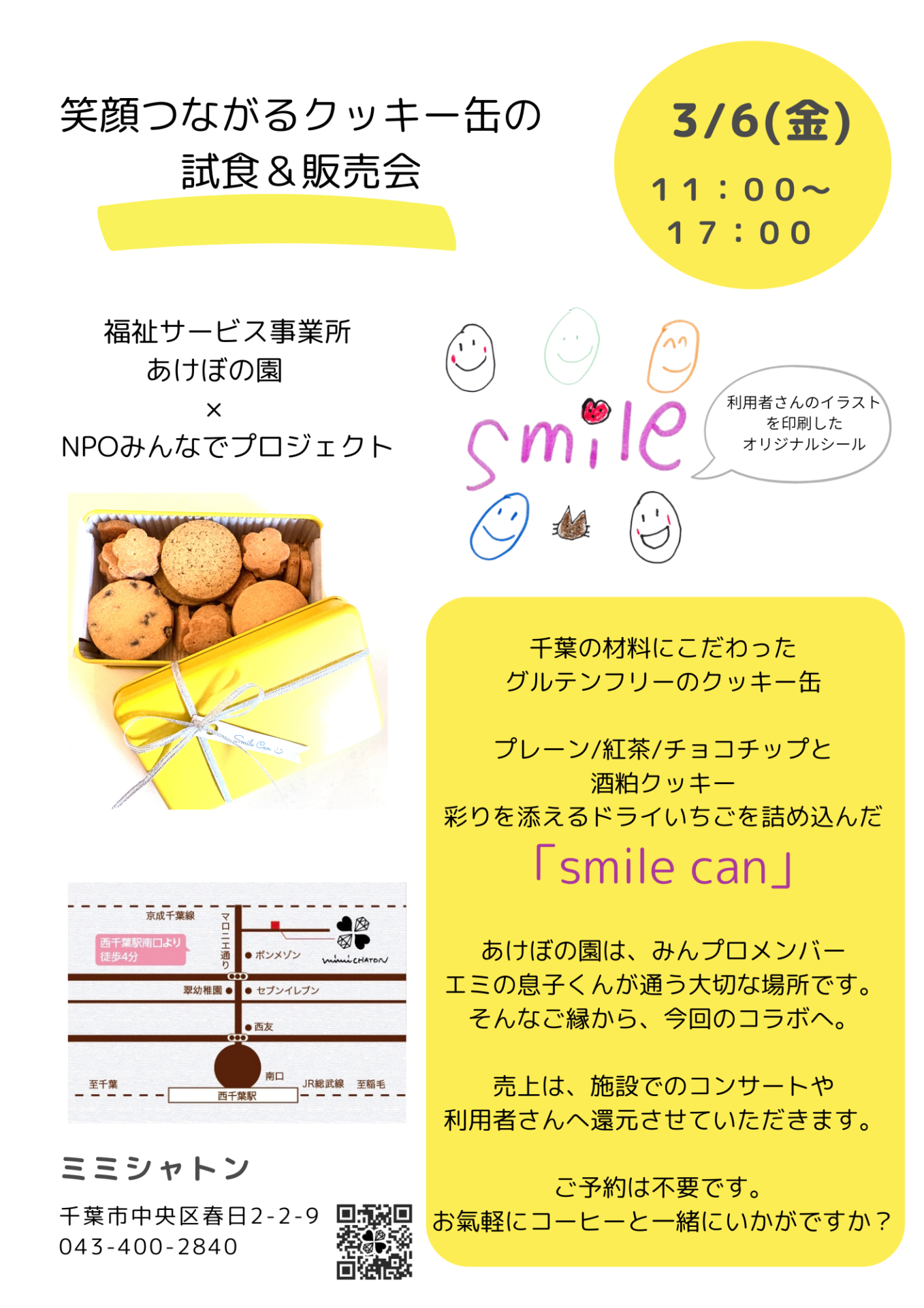 NPOみんなでプロジェクトが初プロデュースした「スマイル缶」の試食&販売会を開催します!