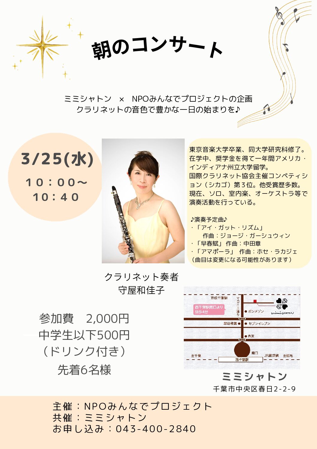 3月25日(水)10時~クラリネットの音色で豊かな朝をご一緒に過ごしませんか?