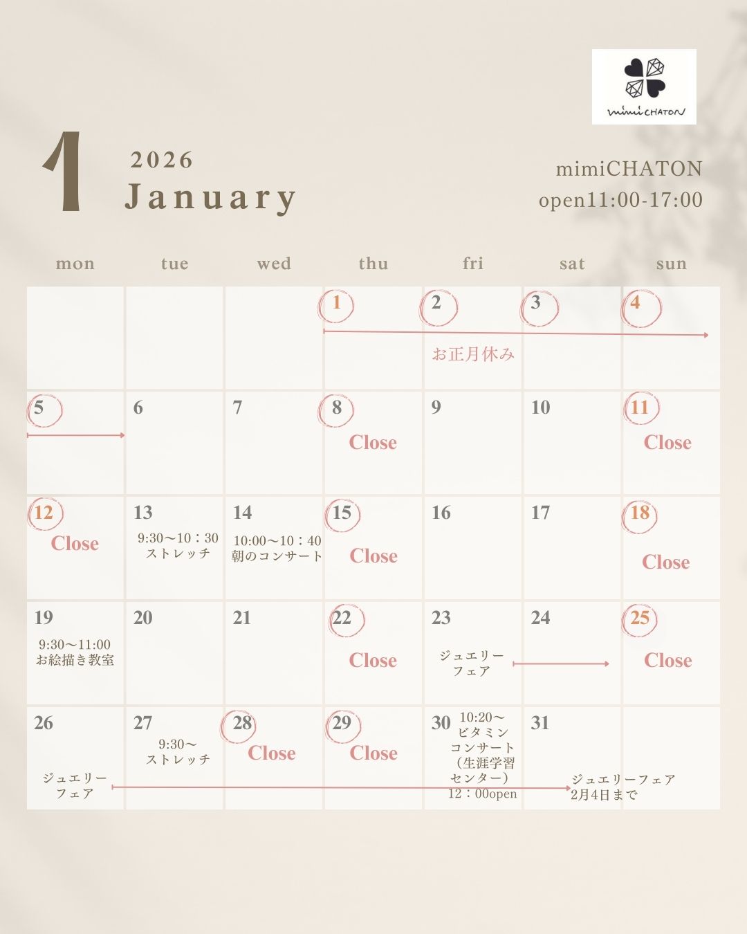1,2月は11:00~17:00までの営業とさせていただきます。